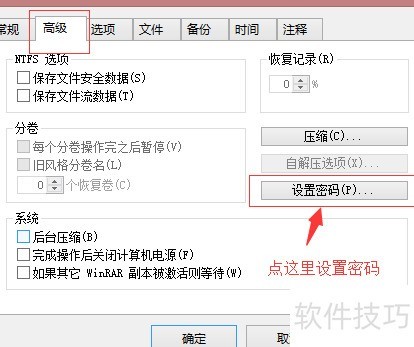 4、 选好文件后,进入高级选项,点击设置密码进行加密操作。