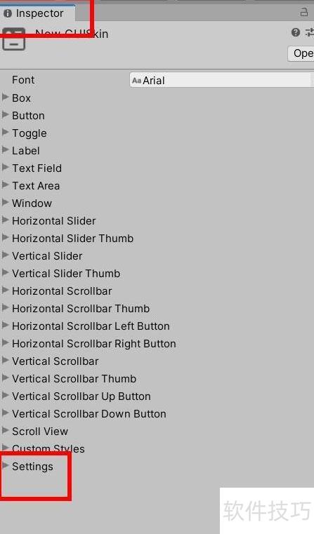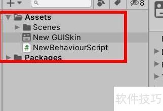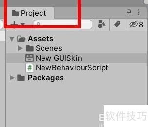 1、 首先创建GUI皮肤,接着在项目面板中进行查找。