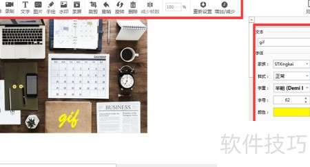 4、 顶部功能栏支持在每张图片中添加自定义文字,每帧均可制作成表情包,且可自由调整字体颜色。