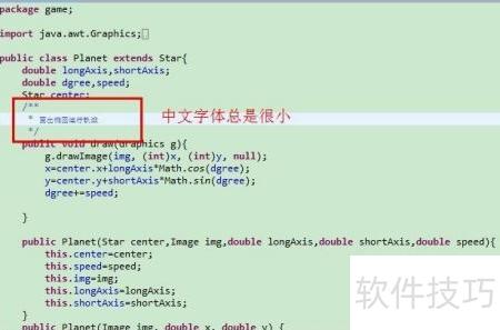 1、 Java代码编辑器中中文显示过小,影响阅读清晰度,所示。