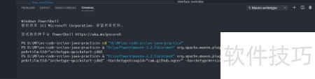 7、 打开 Visual Studio Code 的终端面板,在命令行界面中按下键盘上的向上方向键,即可调出之前执行过的命令记录。此时会显示步骤6中曾运行的 Maven 命令。接下来,在该命令的末尾追加参数 -DarchetypeCatalog=internal,以确保从本地或内部目录加载原型模板,提升生成效率并避免网络延迟。完整的参考命令如下:首先切换到指定工作目录,使用 cd 命令进入项目路径 d:MFvs-code-srcvs-java-practice,然后调用本地安装的 Maven 工具,执行 maven-archetype-plugin 插件的 generate 目标,具体版本为 3.1.2。在命令中明确指定所需的 archetypeArtifactId 为 archetype-quickstart-jdk8,其对应的 archetypeGroupId 为 com.github.ngeor,archetypeVersion 设置为 2.0.0。最后附加 -DarchetypeCatalog=internal 参数,用于指示 Maven 使用内部目录查找模板。整个命令应连续书写,路径和参数之间保持正确空格分隔,确保无语法错误。执行后,Maven 将根据指定的原型自动生成项目结构,包括标准目录布局和基础配置文件,为后续开发奠定基础。注意检查路径中的斜杠方向与系统兼容性,必要时调整为双反斜杠或正斜杠。