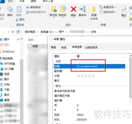 6、 操作完成后,可看到MP3音频文件的标题内容已更新。