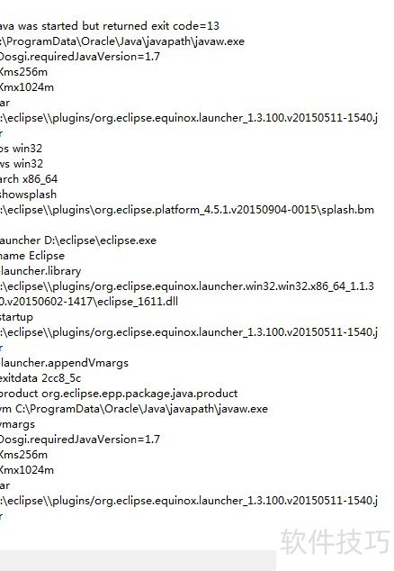 今天安装Eclipse开发工具后,配置好环境却发现无法启动,弹出Java was started but returned exit code=13的错误提示。经过查阅资料和尝试,最终成功解决了该问题。主要原因通常是JDK版本与Eclipse版本不匹配,或系统架构(32位与64位)存在冲突。通过检查Java安装路径、确认JDK位数与Eclipse一致,并在eclipse.ini中正确配置JVM参数,即可恢复正常运行。现将解决方法分享出来,供遇到同类问题的用户参考,希望能为大家提供帮助。