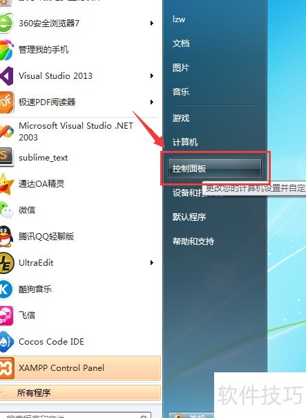 2、 点击桌面左下角开始按钮,进入控制面板菜单选项。