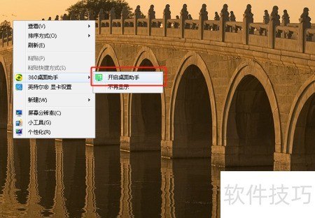 2、 右键点击,选择桌面助手功能。