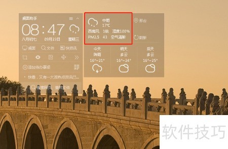 5、 此处可查询天气、日历及时间信息。
