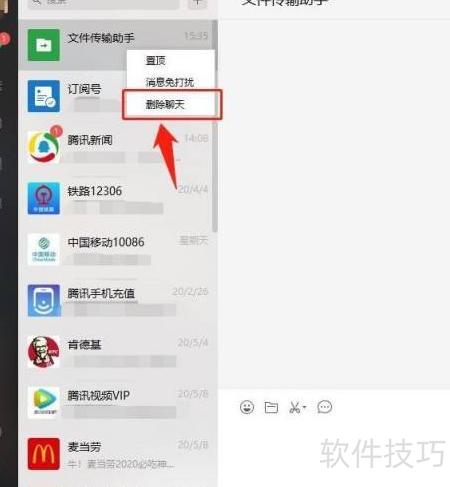 6、 关闭文件传输助手,只需右键点击后选择删除聊天即可完成操作。