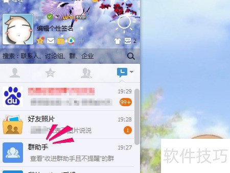 2、 别担心找不到QQ群助手!只需点击主界面左上角的头像,进入设置后选择联系人选项,开启显示群助手功能即可轻松找到它。