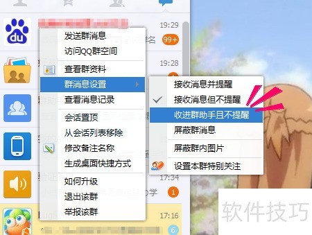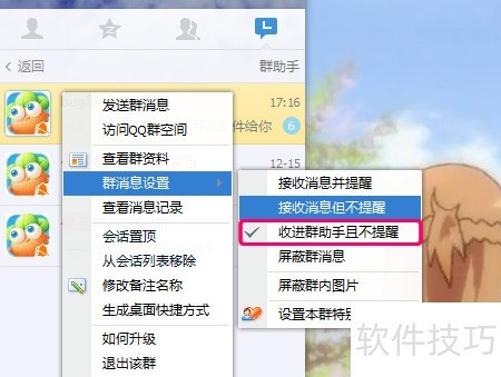 6、 如果不想让QQ群消息进入收件箱助手,只需将消息接收设置为其他非默认选项即可。