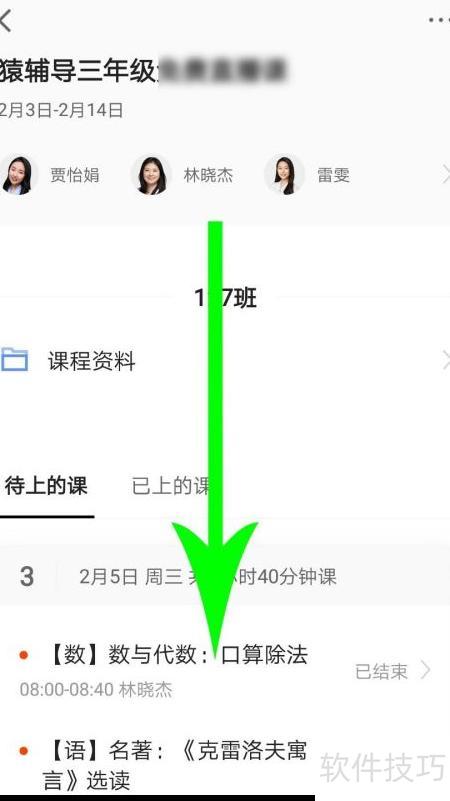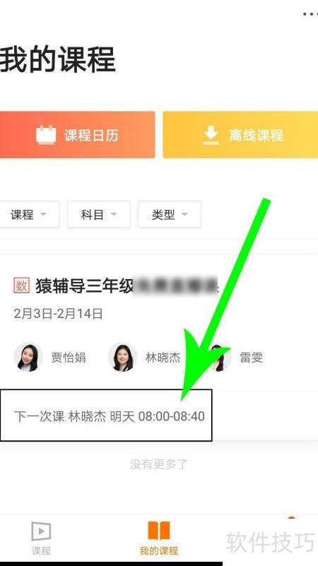 7、 进入猿辅导后,点击我的课程并选择课程总名称即可查看。