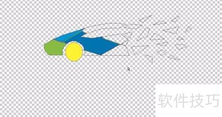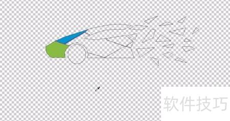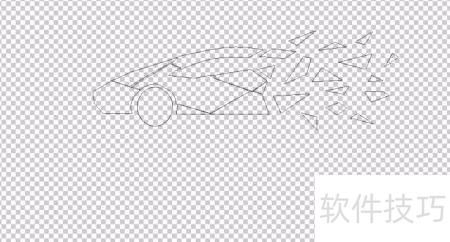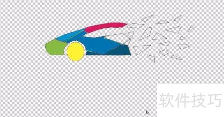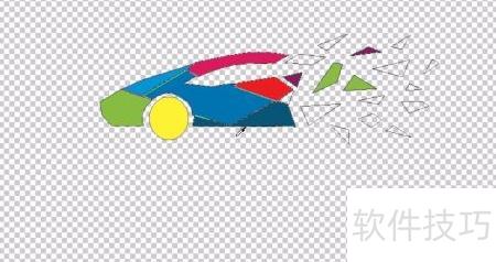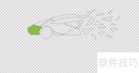 1、 用钢笔工具勾勒出汽车的整体轮廓,由多个独立路径拼合成形;车尾部分则以大量放射状色块表现,同样借助路径精准描绘每一处发散细节,突出视觉层次与动感效果。