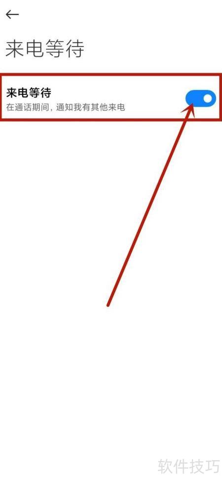 3、 进入来电等待页面,开启该功能,通话中即可接收来电提醒。