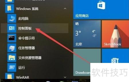 2、 可依次点击桌面左下角的开始按钮,选择Windows系统,然后进入控制面板选项。