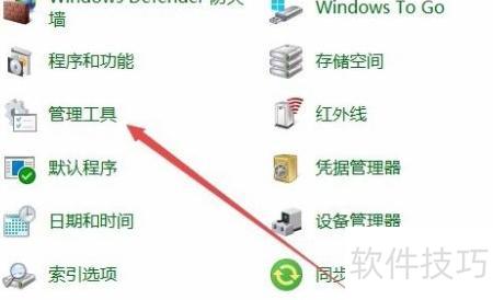 3、 在Windows 10控制面板中,选择并点击管理工具图标进入相关设置界面。