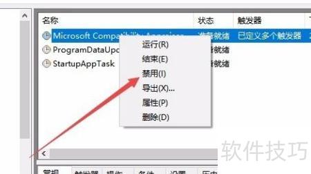 7、 右键单击Microsoft Compatibility Appraiser计划任务,从菜单中选择禁用即可。此操作能有效避免该进程过度占用系统资源,从而提升电脑运行效率,改善整体性能表现。