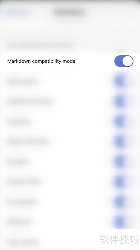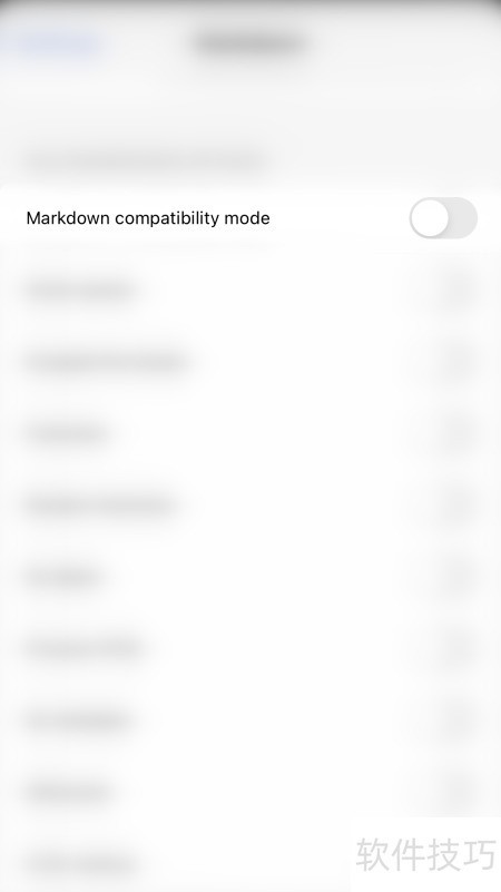 3、 在Markdown选项界面中,点击Markdown兼容模式右侧的圆形按钮即可启用该功能。