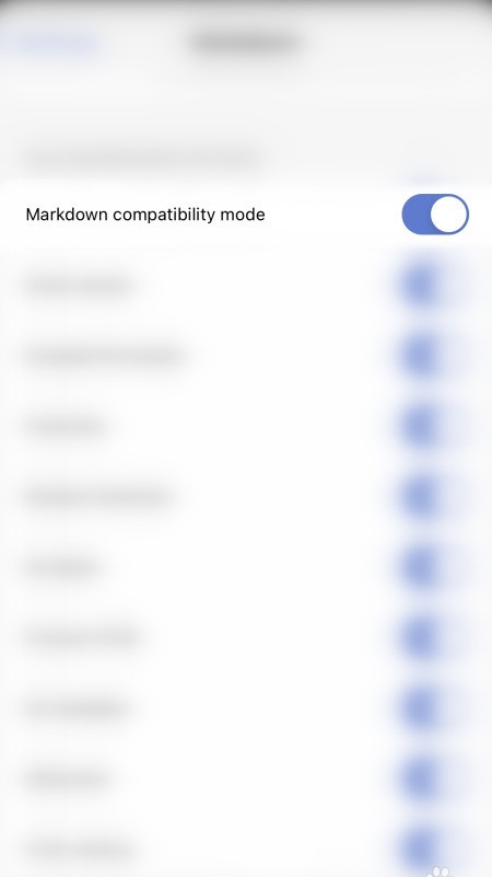 4、 当Markdown兼容模式后的圆点变成蓝色时,表示Drafts已成功启用该模式。