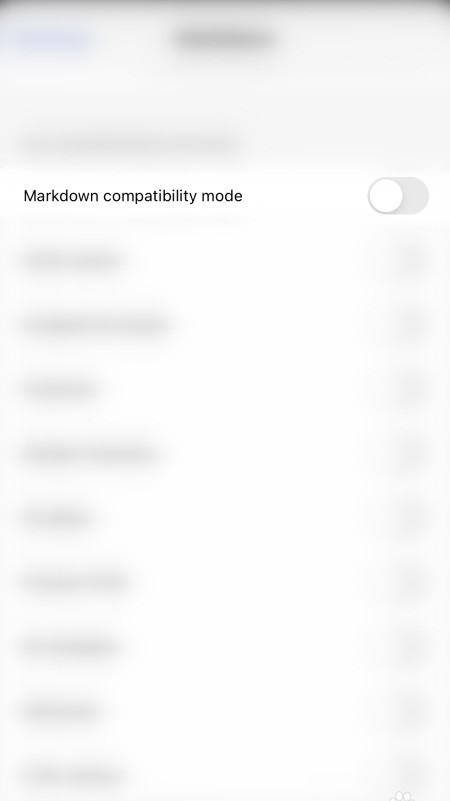 3、 在Markdown选项界面中,点击Markdown兼容模式右侧的圆形按钮即可启用该功能。