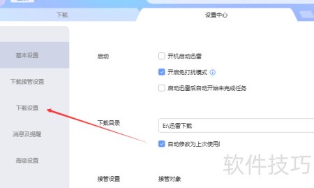 4、 进入设置中心,点击左侧的下载设置选项。