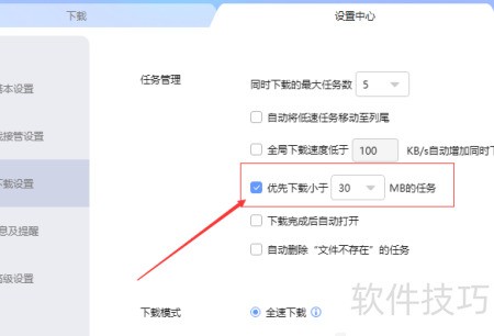 5、 进入下载设置,勾选优先下载较小任务的选项。
