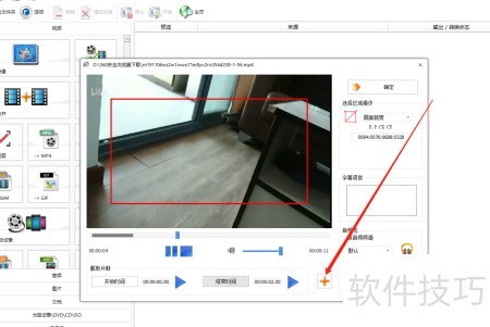 6、 点击加号,将已设置的内容添加至输出方案。若加号未显示,可先点击开始和结束时间按钮,再核对所需截取的时间段是否准确。