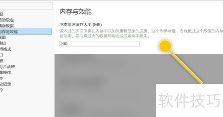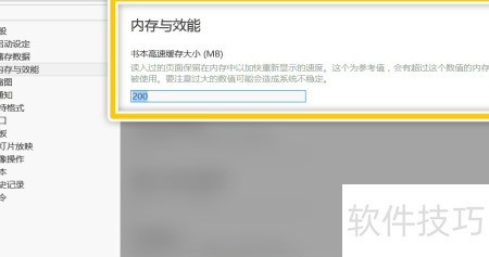 2、 进入一般 > 内存与效能页面,点击书本高速缓存大小输入框进行设置。