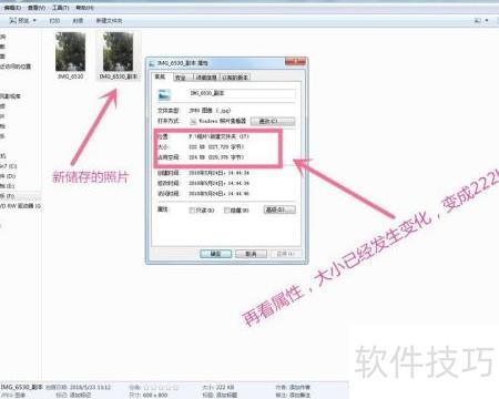 6、 保存新照片后,再次查看属性信息,会发现文件容量显著减小,如今仅为222KB,体积非常轻巧。但有趣的是,照片的尺寸与像素并未改变,视觉效果依旧清晰如初,几乎看不出差异。整个过程操作简单,效果明显。大家不妨亲自尝试一下,轻松实现照片压缩,节省存储空间,提升使用效率。