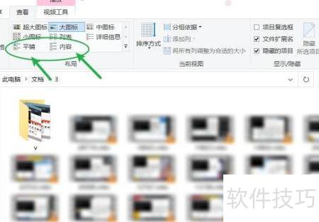 5、 将默认视图更改为内容或平铺,显示效果将随之改变,具体所示。