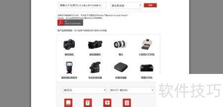 2、 在页面中可通过输入产品型号或选择类型图片查找所需打印机,操作简便直观,帮助用户快速定位目标设备。