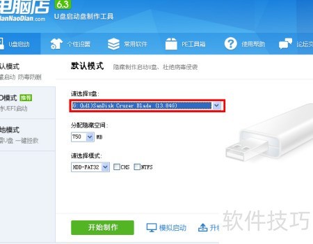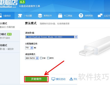 2、 启动制作工具,待识别U盘后,选择制作并点击开始即可。