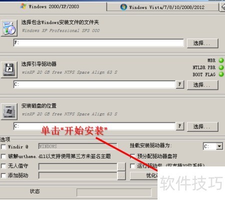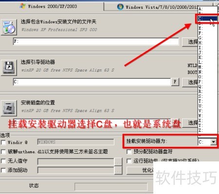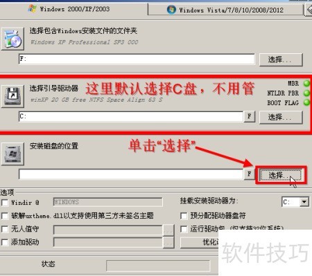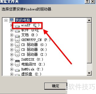 22、 随后选择安装位置,需在C盘中预留超过10GB的分区用于安装Windows XP系统。