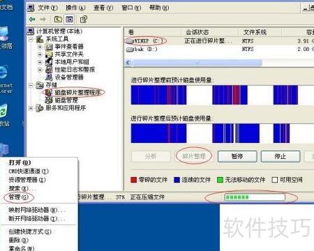 8、 右键点击此电脑,选择管理,进入磁盘碎片整理工具,选中C盘进行整理即可,建议每月操作一次,具体步骤所示。