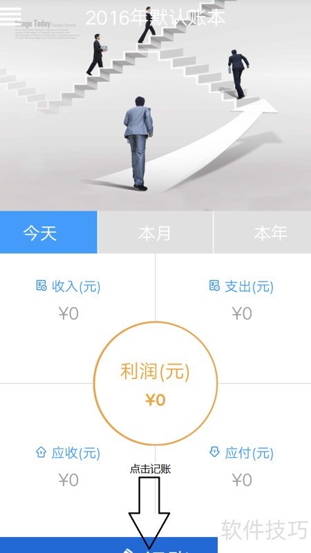 2、 打开应用后,界面简洁直观,收支分类明确,点击记账即可快速完成记录。