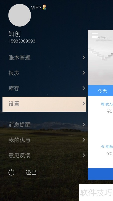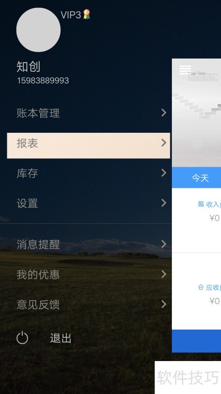 3、 打开列表后,可查看报表、库存及设置等功能,方便查阅所需账目与资金信息。
