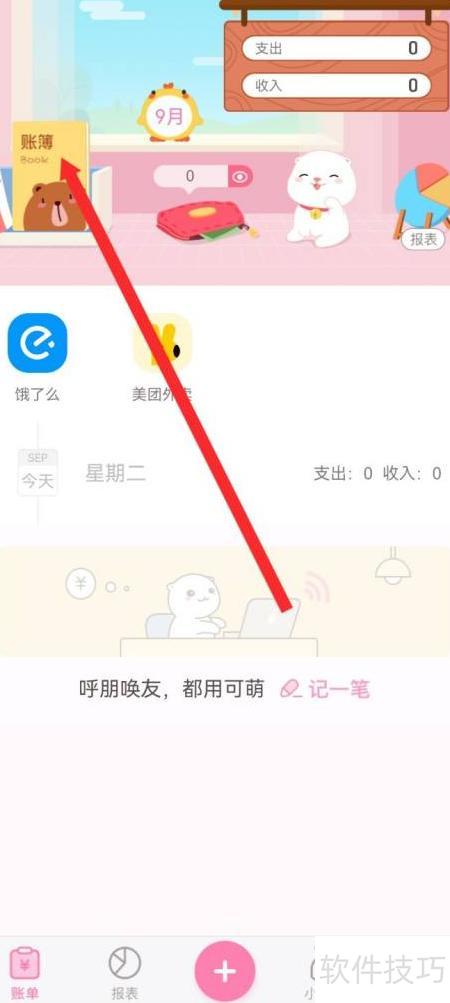 1、 打开可萌记账应用,选择顶部的账簿功能。