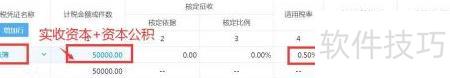 2、 资金账簿印花税按实收资本与资本公积合计余额计税,税率为0.5‰,实际征收时减半计算。