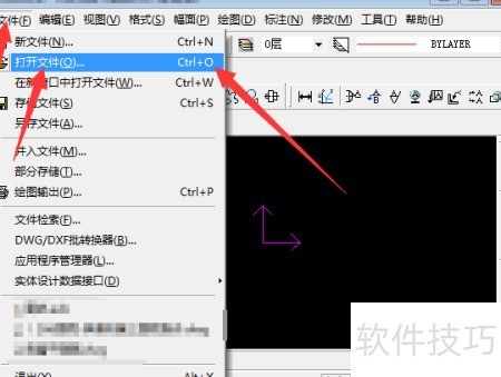 4、 可先启动软件,通过菜单栏的文件选项打开文档,或直接按下Ctrl+O快捷键。