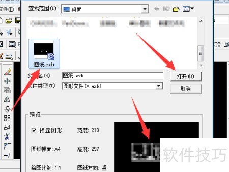5、 在路径中选择exb文件,可预览缩略图,点击后即可查看完整图纸内容。