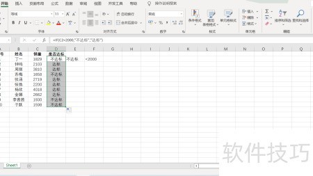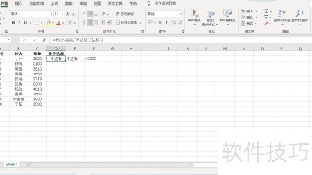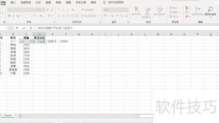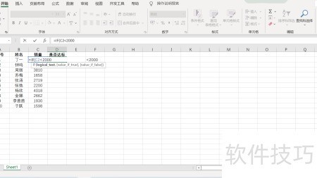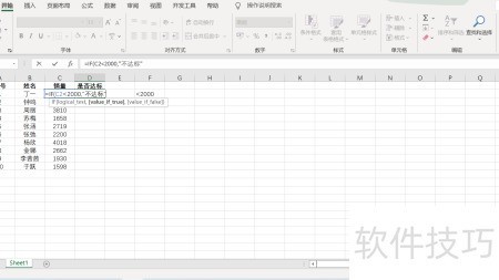 2、 选中销量C2单元格,检查其数值是否低于2000标准值。