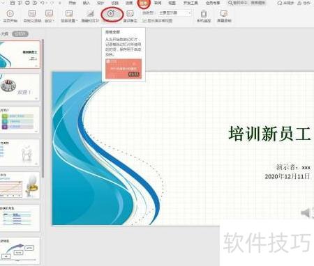 制作演示文稿时,为确保在公开场合准确控制时间,需测试每张幻灯片的播放时长。以下是针对员工培训演示文稿进行排练计时的具体操作步骤。