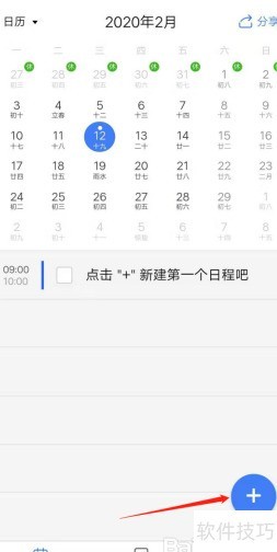 3、 点击后进入日历界面,于右下角选择相应选项即可创建新日程。