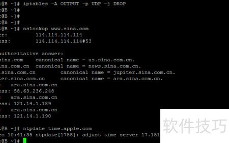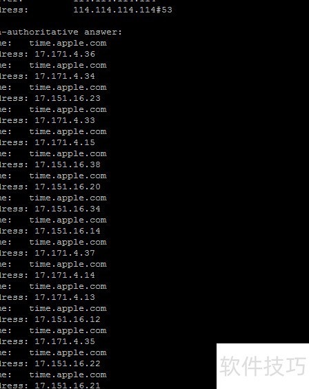 8、 先查看nslookup time.apple.com解析出的IP地址信息。