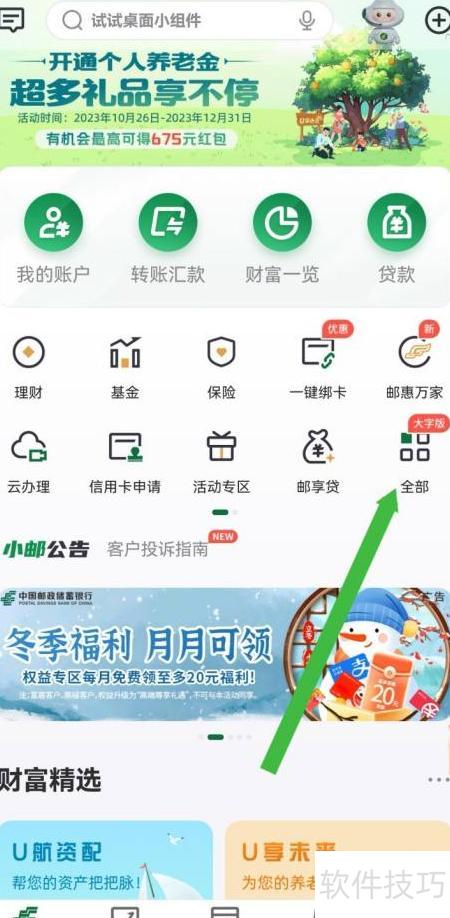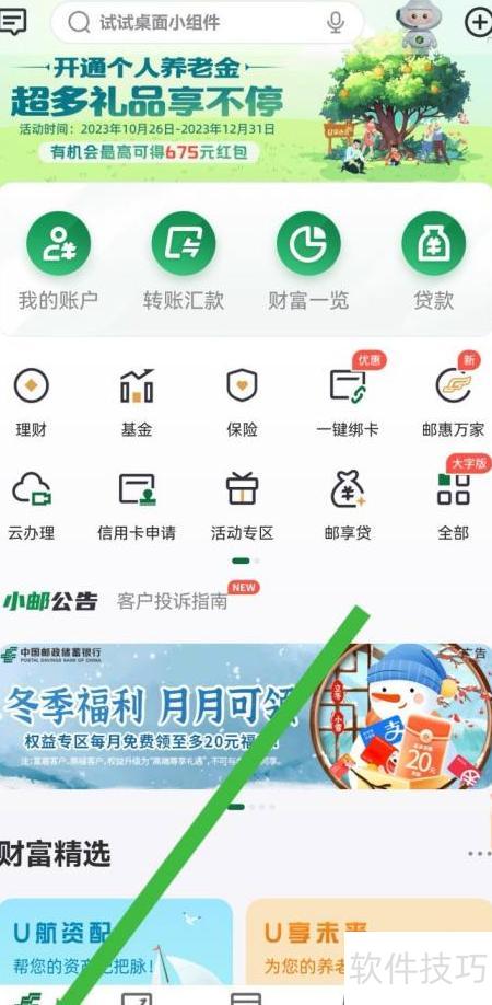 1、 打开邮储银行应用,点击首页进入主界面。