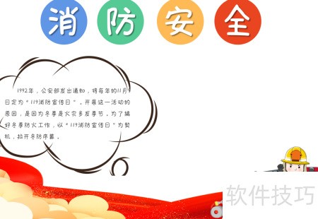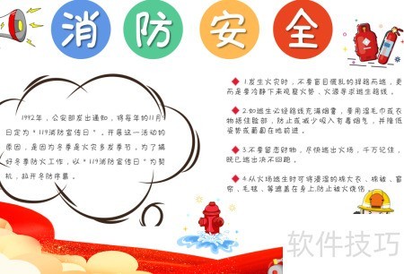3、 在中间区域绘制边框,填写指定内容,并于右侧空白处补充消防安全知识。