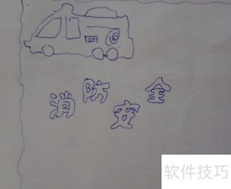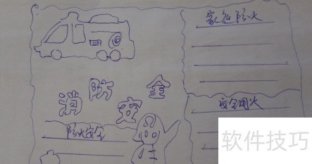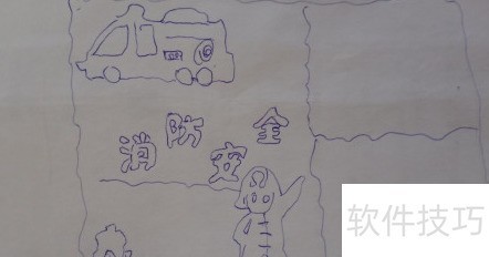 2、 在左上角画辆消防车。