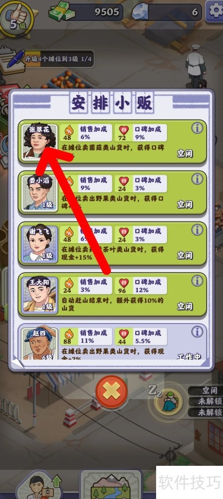 6、 最后选中员工张翠花,便可指派她负责摊位管理。