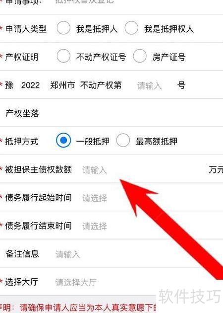2、 在抵押页面输入房产证号、抵押金额及期限等信息,确认无误后提交申请即可办理商品房抵押。