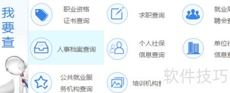 4、 进入页面后,在左侧中间区域点击我要查,然后选择人事档案查询即可。