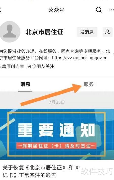 1、 关注北京市居住证公众号后,点击右下角服务即可进入相关页面。