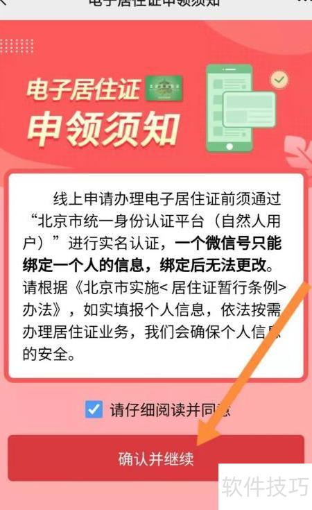 3、 阅读申领须知后,点击确认并继续,进入下一环节。